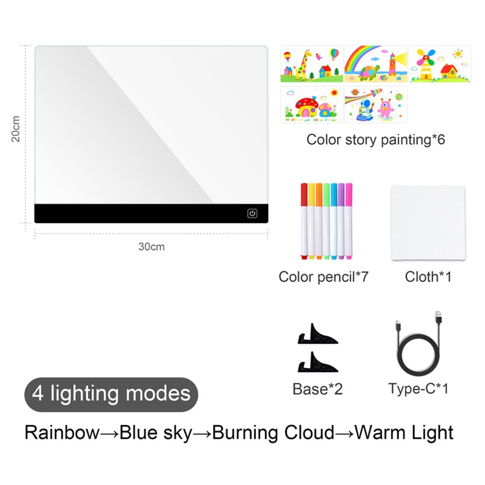 - 【Natural Light Effects】Featuring select IC LED beads, this board offers rainbow, blue sky, burning cloud, and warm light effects. Static doodles transform with the changing light, telling stories through light and shadow.